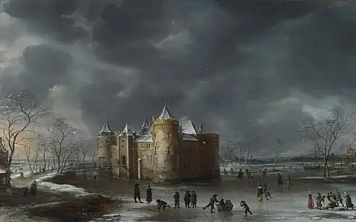 The Castle of Muiden in Winter is a 1658 oil on canvas painting by Jan Abrahamsz Beerstraaten, now in the National Gallery, London, which bought it in 1890.[1] It shows Muiden Castle near Amsterdam, with several figures ice skating in the foreground.