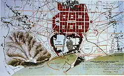 More than ten years passed until the Barcelona City Council approved a project prepared by its secretary Manuel Durán y Bas, which was sent to the Madrid government on 23 May 1853, with the unanimous signature of the consistory with its mayor, Josep Beltran i Ros at the head. The report received the support of the Catalan deputies and especially Pascual Madoz, deputy for Lérida and a key person in the demolition of the walls. Madoz became civil governor of Barcelona for barely seventy-five days when he became Minister of Finance of the progressive government, from where he urged the disentailment and promulgated a royal order that would put an end to the confrontations between the City Council and the Ministry of War.[9] The order to demolish the walls of 9 August 1854, specified that the sea wall, Montjuïc Castle and the Citadel were to be maintained.[10]