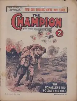 The Champion was a British weekly boys' story paper published by Amalgamated Press, which ran from January 28, 1922, until March 19, 1955.[1] Its original editor was Francis Addington Symonds. From 1929 until 1940 it had a monthly, pocket-sized companion paper, The Champion Library, containing characters from The Champion and its sister paper The Triumph.[2] The Triumph eventually was merged into The Champion in 1942.