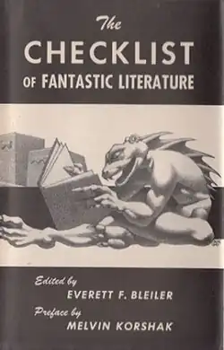 The Checklist of Fantastic Literature is a bibliography of English science fiction, fantasy and weird books compiled and edited by Everett F. Bleiler with a preface by Melvin Korshak and a cover by Hannes Bok.