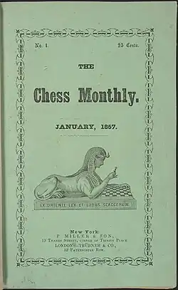 The Chess Monthly was a short-lived monthly chess magazine produced from January 1857 and May 1861 in the United States.[1][2] Edited by professional diplomat and linguistics professor Daniel Willard Fiske, it was co-edited for a time by Paul Morphy.[1][2] The magazine was based in New York City.[3]