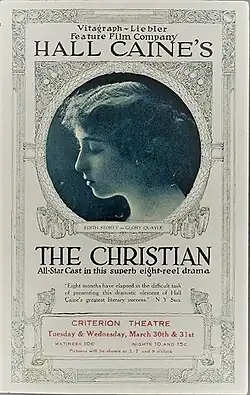The Christian was produced by the Vitagraph Company of America in association with the Liebler Company. It was the first eight reel film they made. Shooting was done in part at North Scituate in Rhode Island, at Winthrop Beach, in Massachusetts and in several places between Boston and Philadelphia. Frederick Stanhope, assistant to Frederick A. Thomson, was the theatrical director who had performed the Broadway work for Liebler Co. Viola Allen, the show's star, wanted to play Glory Quayle in the film, but Edith Storey wanted the role for herself.[3] Caine wrote the film scenario, the first time ever that a famous author undertook a film scenario of their own work. Vitagraph staff writer Eugene Mullins followed Caine's scenario.[4]