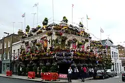 The Churchill Arms is a public house at 119 Kensington Church Street on the corner with Campden Street, Notting Hill, London. There has been a pub on the site since at least the late nineteenth century. Previously known as the "Church-on-the-Hill", the pub received its current name after the Second World War.[1] It is known for its exuberant floral displays, and extravagant Christmas displays in the winter,[2] and has been described as London's most colourful pub.[3]