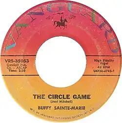 When Buffy Sainte-Marie recorded "The Circle Game" in 1967 for her album Fire & Fleet & Candlelight, it was also released as a single (with "Until It's Time for You to Go" as the B-side) but did not chart. Sainte-Marie's version was later featured on the soundtrack to the 1970 film The Strawberry Statement and was reissued as a single. The 1970 reissue reached No. 109 on the Billboard singles chart.[8]