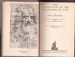 The Civilization of the Renaissance in Italy (German: Die Cultur der Renaissance in Italien) is an 1860 work on the Italian Renaissance by Swiss historian Jacob Burckhardt. Together with his History of the Renaissance in Italy (Die Geschichte der Renaissance in Italien; 1867) it is counted among the classics of Renaissance historiography. An English translation was produced by S.G.C. Middlemore in two volumes, London 1878.