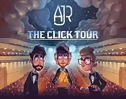 The Click Tour was the third concert tour by American indie pop band AJR, supporting their second studio album, The Click (2017). It ran from February 8, 2018, to December 21, 2018, and covered 46 shows across North America. The set list consisted primarily of songs from The Click, additionally including "I'm Ready" from Living Room (2015), "Don't Throw Out My Legos" from Neotheater (2019), and one cover per show.