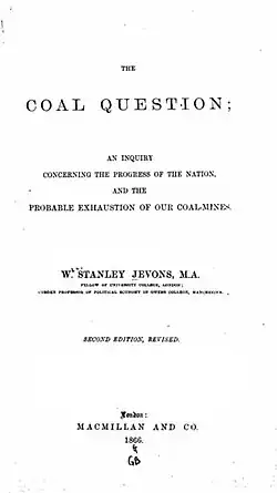 - ^ See Jevons, William Stanley (1865). The Coal Question; An Inquiry Concerning the Progress of the Nation, and the Probable Exhaustion of Our Coal Mines (1 ed.). London & Cambridge: Macmillan & Co. Retrieved 15 August 2022. via Internet Archive