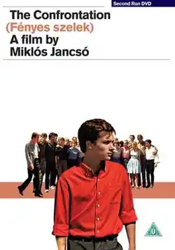 The Confrontation (Hungarian: Fényes szelek,, literally "Sparkling Winds", the name of a revolutionary song) is a 1969 Hungarian drama film directed by Miklós Jancsó. Filmed in and around the Benedictine Pannonhalma Archabbey, it is set (despite its colorful modern dress) in 1947, during the Second Hungarian Republic. The plot involves tensions between leaders of a student revolutionary group (People's National Association of Colleges or NÉKOSZ) that takes over the Benedictine High School of Pannonhalma: Laci believes in befriending and convincing the high school students, but Jutka tries to resort to revolutionary terror. Both are deposed by the plainclothes police who have been complicit in the takeover.