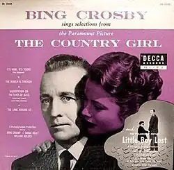 The Country Girl / Little Boy Lost is a Decca Records album by Bing Crosby of songs from the Paramount films Little Boy Lost and The Country Girl. This is not a soundtrack recording album but the songs used in the films were separately recorded for commercial release. It was issued as a 10” LP with catalog No.DL 5556.[1] The songs from The Country Girl were also issued on an extended play record numbered ED-2156[2] and all of the songs from both films were used in the 15-part Bing’s Hollywood series issued by Decca in 1962.[3]