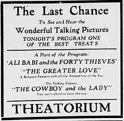 The Cowboy and the Lady is a 1911 American silent Western film notable for being Alan Hale Sr.'s screen debut.[1]