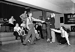 Houseman determined that there were no legal restrictions on performing the musical with a new financial backer, and beginning on June 18, Helen Deutsch, press agent for the Theatre Guild, agreed to serve as the financial backer for The Cradle Will Rock; the actors received a two-week leave of absence from the WPA, and, in an agreement with Actors' Equity, Deutsch paid the 19 cast members $1500 for the two weeks' performances.[26] Two days later, Houseman announced that, should the production prove successful, the two-week run would be continued indefinitely.[28] Houseman also announced that the musical would continue to be performed with Blitzstein playing piano onstage and the cast members singing from the audience. He asserted that this made the audience feel like part of the show, stating, "There has always been the question of how to produce a labor show so the audience feels like it is a part of the performance. This technique seems to solve that problem and is exactly the right one for this particular piece".[28] The success of the performance led Welles and Houseman to form the Mercury Theatre.[29]