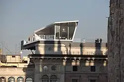 Two copies of The Cube were made, and they both tour Europe in a different city each year. During 2011, versions of the restaurant visited Milan and Brussels,[2] while in 2012 they are in London and Stockholm. The restaurant proved so popular in London that it was announced in September 2012 that the restaurant would stay in the city until 31 January 2013.[3] There are further plans for the restaurant to visit Switzerland and Russia.[4] In each city, the restaurant is placed on top of a monument; in Brussels it was on top of the triumphal arch at the Parc du Cinquantenaire,[5] in Milan by the Galleria Vittorio Emanuele II, in London it is located on top of the Southbank Centre.[3]