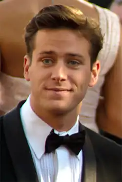 "The D'oh-cial Network" also parodies the 2010 drama film The Social Network, which portrays the founding of Facebook by Mark Zuckerberg and the subsequent lawsuit by American rowers Cameron Winklevoss and Tyler Winklevoss who claimed Zuckerberg stole their idea.[4][5][6] The Social Network, like the episode, features a scene in which the Winklevoss twins are seen rowing.[7] In July 2011, it was announced in Entertainment Weekly that American actor Armie Hammer would make a guest appearance in "The D'oh-cial Network", playing the Winklevoss twins.[8][9] Hammer previously attained that role in The Social Network.[10][11] According to The Simpsons showrunner Al Jean, the staff of the show decided not to ask the Winklevoss twins to guest star in the episode as themselves because "We [the staff] were like, 'Wait, [Hammer] played them, that's who people think they are, we should just get him.'"[12] Hammer met with the producers of the series in May 2011 to record his lines.[12]