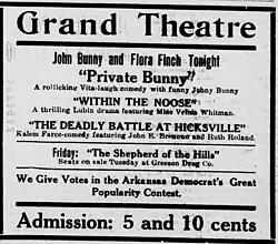 The Deadly Battle at Hicksville is a 1914 American silent short comedy film directed by Marshall Neilan and starring John E. Brennan, Ruth Roland, and Lloyd Hamilton. The film was released by General Film Company on July 31, 1914.[3]