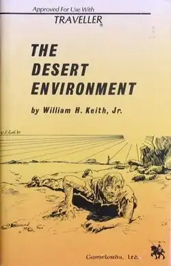 The Desert Environment was written by J. Andrew Keith and William H. Keith Jr. for Game Designers Workshop's Traveller role-playing game, and published under license by Gamelords in 1984. The book provides Traveller gamemasters with in-depth information about the desert, allowing them to accurately present adventures in the desert wastes of alien worlds.[1] A companion adventure, Duneraiders was written by the same author.