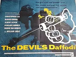 The Devil's Daffodil (also known as Daffodil Killer or German: Das Geheimnis der gelben Narzissen/ Secret of the Yellow Daffodils) is a 1961 British-West German black-and-white crime film directed by Ákos Ráthonyi.[1] The film was produced in an English and a German version, starring different actors in the lead roles but otherwise featuring an almost identical cast and crew. It starred William Lucas in the English version and Joachim Fuchsberger in the German one.