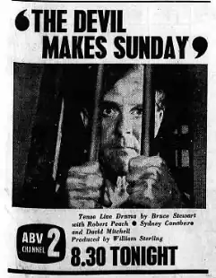 The Devil Makes Sunday is a 1962 Australian television play by New Zealand-born author Bruce Stewart. It was broadcast live from Melbourne, and taped and shown in other cities at a later date.[3]