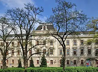 The new district court building opened on December 2, 1905, the 57th anniversary of enthronement of Emperor Franz Joseph I Habsburg. He visited the Court on September 2, 1906, planting an imperial oak in front of the building.[2] The court building served as the Austrian Regional Court (Kreisgericht). In the past, there was a two-headed eagle and an inscription: "K. K. KREISGE-RICHT" - "Imperial-royal Regional Court" over a window on the second floor.[2]