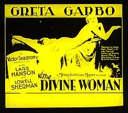 The Divine Woman (1928) is an American silent film directed by Victor Sjöström and starring Greta Garbo. Produced and distributed by Metro-Goldwyn-Mayer. Only a single nine-minute reel[3] and an additional 45-second excerpt[4][5] are currently known to exist of this otherwise lost film; the only known complete copy of which was destroyed in the 1965 MGM vault fire.[6][7][8]