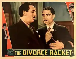 The Divorce Racket is a 1932 American crime drama film directed by Aubrey Scotto and starring James Rennie, Olive Borden and Judith Wood. It is now considered to be a lost film.[1] It was produced by the independent Poverty Row studio Paradise Pictures and was given a re-release by Ideal Pictures in 1935.[2] In Britain it was distributed under the alternative title The Girl in the Cab.