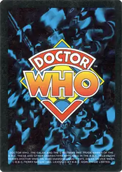 The Doctor Who Collectible Card Game is an out-of-print collectible card game published in 1996 by MMG Ltd and is based on the British television series Doctor Who.[1] A total of 301 cards were released in the main set, plus 1 additional promotional card.[2]