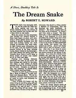 "The Dream Snake" is a short story by Robert E. Howard, first published in the pulp magazine Weird Tales in February 1928.