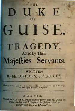 This article incorporates text from this source, which is in the public domain. - The Duke of Guise a tragedy: acted by Their Majesties servants / written by Mr. Dryden and Mr. Lee. London: Printed by T. H. for R. Bentley ... and J. Tonson ..., 1683.