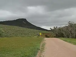 The Dutchmans Stern Conservation Park is located in the gazetted localities of Emeroo and Quorn in the Flinders Ranges about 5 kilometres (3.1 miles) north-west of the town centre of Quorn and 25 kilometres (16 miles) north east of the city of Port Augusta.[4][5] The conservation park covers an area of 3,695 hectares (9,130 acres).[3] The conservation park consists of a ridge of height greater than 850 metres (2,790 feet), including The Dutchmans Stern, a mountain located at the northern end of the ridge, and the land to the west, north and east sides of the ridge.[5][6] The conservation park is classified as an IUCN Category VI protected area.[1] The higher crests of the range possess the most northerly occurrence of Eucalyptus leucoxylon pruinosa (SA inland Blue Gum) woodland along middle and lower slopes and Grey Box Eucalyptus microcarpa in the easterly sections of Pichi Richi Pass just south of the main range. Large River Red Gums (Eucalyptus camaldulensis minima) can be found in seasonally damp foothills and gullies along watercourses. Sugar Gums (Eucalyptus cladocalyx) (unique forest forming eucalypt) also are at their most northerly occurrence along the higher southerly facing ridges form open woodlands alongside Northern Cypress Pine and Sheoak. Red and Green Mallee can be found along limestone and drier Westerly facing ridges. Lace Goannas, Kookaburras and few other keystone species occur no further north than Dutchman's Stern range. The lower eastern foothills are clothed in Quorn Wattle and Quorn Box (Eucalyptus porosa).