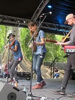 The East Pointers are a Canadian contemporary folk music group from Prince Edward Island,[1] who won the Juno Award for Traditional Roots Album of the Year for their album Secret Victory at the Juno Awards of 2017.[2] The group originally consisted of guitarist Jake Charron, banjoist Koady Chaisson (d. 2022), and fiddler Tim Chaisson.[1] They perform Celtic-influenced original songs and instrumentals with contemporary influences.[3]