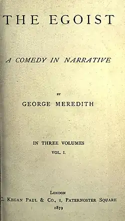 - ^ Meredith, George (1879). The Egoist, A Comedy in Narrative. Vol. I (1 ed.). London: Kegan Paul & Co. Retrieved 3 June 2016 – via Internet Archive.
