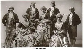 The Elliott–Savonas were a troupe of British music hall, circus and variety entertainers, between the 1870s and 1920s, who performed two distinct stage acts. As The Cycling Elliotts, they performed cycling tricks; and, as The Musical Savonas, the same individuals formed a saxophone band. They used various combinations of names in their billings, including The Elliotts as the Musical Savonas,[1] and were described as "one of the most successful and original of the early music hall speciality acts".[2]