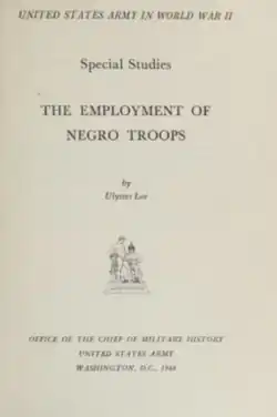 - ^ "The Employment of Negro Troops. By Ulysses Lee. [U. S. Army in World War II: Special Studies, Number 8.] (Washington, D. C.: Office of the Chief of Military History, United States Army. 1966. Pp. xix, 740. $7.75.)". The American Historical Review. April 1967. doi:10.1086/ahr/72.3.1121.
