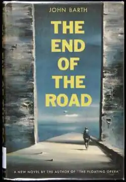 The End of the Road can be viewed with The Floating Opera (1956) as forming the early, existentialist or nihilist phase of Barth's writing career. This phase was realistic in a modernist sense; it lacked the fantastic elements that manifested themselves in Barth's experimental phase that began with The Sot-Weed Factor (1960).[13] Both novels, while displaying a distinctive style, followed conventions readers expected from a novel,[14] and were part of a realist trend in American novels during the 1940s and 1950s.[15] As The Floating Opera closes, its protagonist, Todd Andrews, concludes that life has no absolute values but that there are relative values that are "no less 'real', for ... being relative".[16] Barth has said he wrote The End of the Road to refute this worldview by carrying "all non-mystical value-thinking to the end of the road",[2] and that the second novel was a "nihilistic tragedy" paired with the "nihilistic comedy" of the first.[17] Barth also sees the book as the second of a "loose trilogy of novels" that concludes with The Sot-Weed Factor, after which he embarked on the fabulist Giles Goat-Boy (1966).[18]