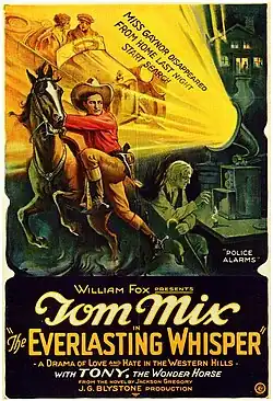 The Everlasting Whisper is a lost 1925 American silent Western film directed by John G. Blystone and written by Wyndham Gittens. It is based on the 1922 novel The Everlasting Whisper, a Tale of the California Wilderness by Jackson Gregory. The film stars Tom Mix, Alice Calhoun, Robert Cain, George Berrell, Walter James and Virginia Madison. The film was released on October 11, 1925, by Fox Film Corporation.[1][2][3]
