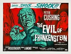 The Evil of Frankenstein is a 1964 British film directed by Freddie Francis and starring Peter Cushing, Sandor Elès and Kiwi Kingston.[3] The screenplay was by Anthony Hinds (as John Elder). It is the third instalment in Hammer's Frankenstein series.
