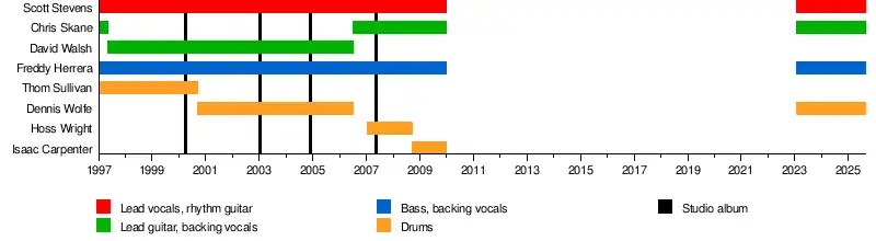 In 2008, internet rumors circulated that Scott Stevens was suffering from drug addiction. Stevens denied the drug abuse hearsay, and joked about the rumors during press interviews.[3] In June, the Exies completed The Cage-Rattle Most Wanted Tour with Nu-metal band, Nonpoint. In October that year, they began a tour with TRUSTcompany.
