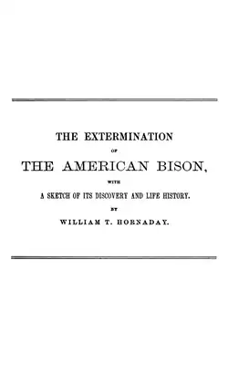 The Extermination of the American Bison is a book by William Temple Hornaday first published in 1889 by the Government Printing Office.[1] It was reprinted from a report Hornaday wrote for the Smithsonian Institution in the years 1886–87.[2]