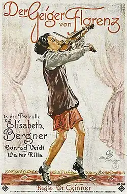 The Fiddler of Florence (German: Der Geiger von Florenz) is a 1926 German silent comedy film directed by Paul Czinner and starring Elisabeth Bergner, Conrad Veidt, and Nora Gregor. The film was shot at the EFA Studios in Berlin and on location around Lake Lugano in Italy. It premiered at the Gloria-Palast in Berlin.[1] It reunited Bergner and Veidt who had starred together in the successful Husbands or Lovers, also directed by Czinner.