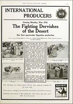 The Fighting Dervishes of the Desert is a 1912 American silent film produced by Kalem Company and distributed by General Film Company. It was directed by Sidney Olcott with himself, Gene Gauntier and Jack J. Clark in the leading roles.