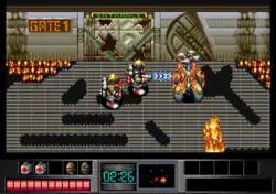 Two firemen, Pete and Danny, are called in to respond to a fire in a high-tech amusement park where the robots have run amok and set fire to it.[1] The robots in the various attractions appear as bosses, such as an animatronic T-Rex.[1]