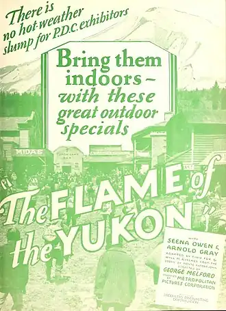 The Flame of the Yukon is a 1926 American silent Northwoods adventure drama film starring Seena Owen and directed by George Melford. The film is based on a story by Monte Katterjohn and was distributed by Cecil DeMille's Producers Distributing Corporation.[1] The film is a remake of a 1917 film that had starred Dorothy Dalton, which survives at the Library of Congress.