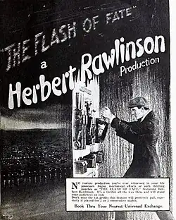 The Flash of Fate is a 1918 American silent thriller film directed by Elmer Clifton and starring Herbert Rawlinson, Sally Starr and Jack Nelson.[1]