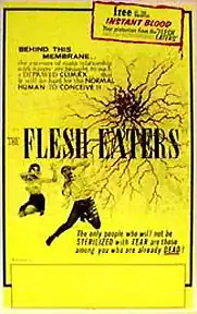 The Flesh Eaters is a 1964 American horror/science fiction thriller, directed on a low budget by Jack Curtis and edited by future filmmaker Radley Metzger. The film contains moments of violence much more graphic and extreme than many other movies of its time, making it one of the first ever gore films.[1]