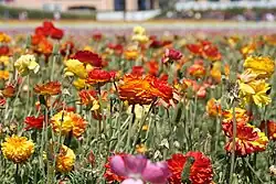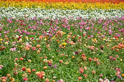 The Flower Fields is a flower garden in Carlsbad Ranch in Carlsbad, California. The Giant Tecolote Ranunculus flowers that make up the garden are in bloom for approximately six to eight weeks each year, from early March through early May. The garden is typically open to visitors between March 1 and Mother's Day.[1] Volunteers lead educational tours of the fields.
