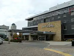 Inn at the Forks is a five-storey hotel located at the Forks.[30] It has 117 guest rooms and suites, meeting and reception space for up to 200 people, fitness facilities, and features the restaurant Smith and Riverstone Spa.[31] The hotel features natural slate floors in the main lobby, glass vanities in the suite washrooms, heated floors, and a water wall in the spa.[30]