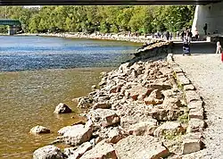 The Riverwalk is often closed due to river flooding in springtime.[55][56] From the construction of the walkway to the summer of 2011, the walkway has been submerged beyond access for part of the summer for 16 out of 21 years.[57]