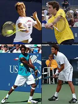 A second group of New Musketeers,[2] as coined in L'Équipe and adopted by the French press, refers to the 21st century squad of star players headlined by Jo-Wilfried Tsonga, Gaël Monfils, Richard Gasquet and Gilles Simon.[15] In 2008, France boasted four Top 20 players, a feat never before achieved since computer rankings were established in 1973.[1] This configuration of the same four players in the Top 20 has been reproduced in mid-2011, in early 2012 and early 2016.