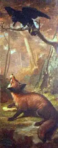 The Fox and the Crow is one of Aesop's Fables, numbered 124 in the Perry Index. There are early Latin and Greek versions and the fable may even have been portrayed on an ancient Greek vase.[1] The story is used as a warning against listening to flattery.