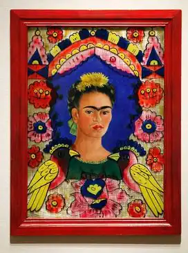 The Frame (El marco in Spanish) is a 1938 self-portrait by Frida Kahlo.[1] The painting features Kahlo's self-portrait in oil on a sheet of aluminum framed in glass which she purchased from a market in Oaxaca, Mexico.[2] Although the glass frame is included as part of the painting, the flowers, birds, and other details on the frame were painted prior to being purchased by Kahlo.[3]
