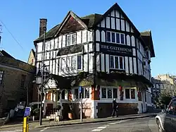 It was subsequently rebuilt in mock Tudor style. From 1993 to 2015 it was part of the Wetherspoons chain.[6] It features a theatre above the pub known as Upstairs at the Gatehouse.